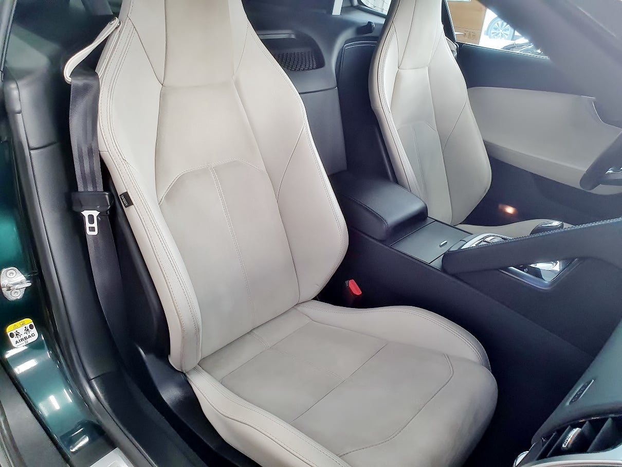 Colore iconico " British racing green met.", con modanature e cerchi da 20" neri in contrasto con i sedili beige chiaro in pelle per la bordatura esterna ed in morbida alcantara anti scivolo per la parte interna seduta-schienale.